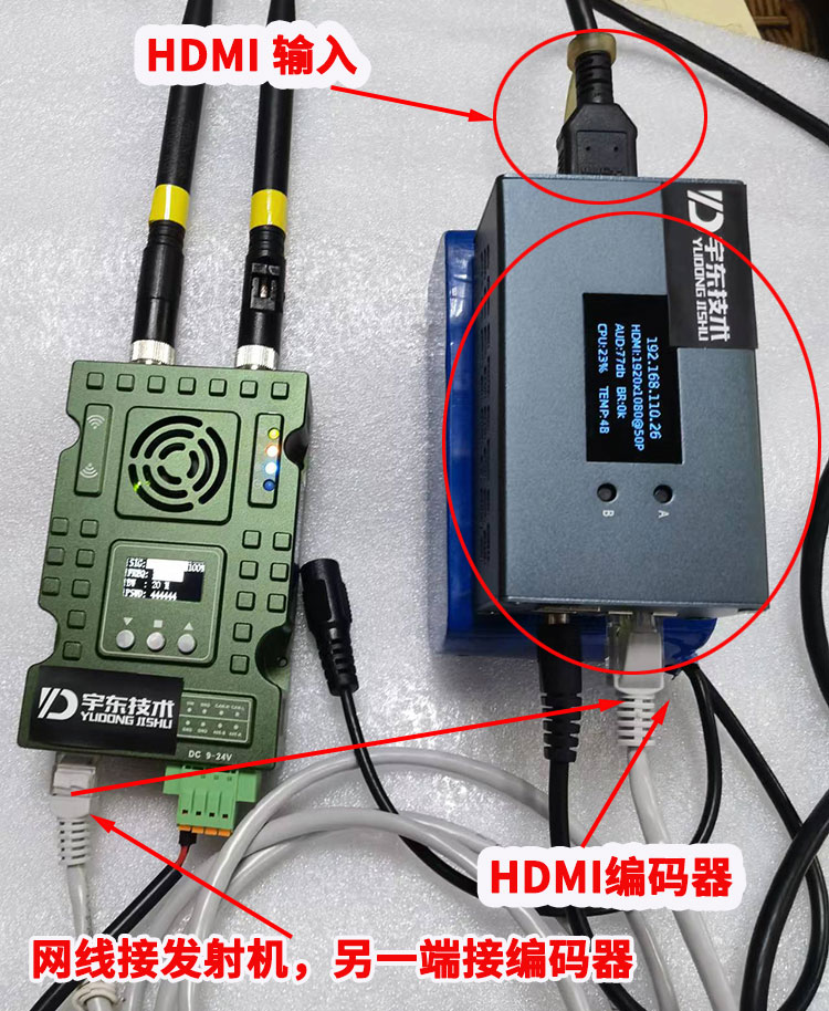 YD-TD9008-DT wireless broadband transmission radio adopts industrial-grade wireless high-speed data transmission technology, non-line-of-sight, non-wifi, set orthogonal frequency division multiplexing TDMA and MIMO multi-input and multiple-output capacity technology, completely based on IP Internet protocol, to achieve full bidirectional transparent channel broadband transmission. Non-visual distance: 300-900 meters; Ground visual distance: 2-18 km. The system is pure hardware connection, plug and play; Innovative LCD integrated design, rich CAN bus, RS-485, TTL level interface, better user perspective experience. The channel supports a maximum of 30Mbps of swallowing and spitting, and can be widely used in industrial automation, industrial robots, drones and other communication work.